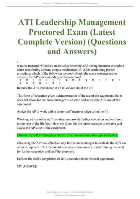 Download online ATI LEADERSHIP MANAGEMENT PROCTORED EXAM Doc